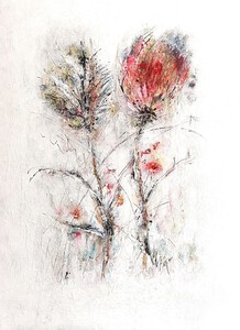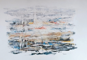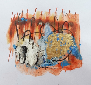 Mijn stijl is expressief, los, veel lijnen en vanuit intuïtie. Ik werk aan meerdere werken tegelijkertijd. Het geeft mij een goed gevoel om rest verf (acryl) weer te kunnen verwerken in de andere composities. Soms op bladzijden van een oud boek, soms op restanten doek. Het levert altijd weer verrassende werken op.