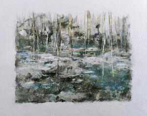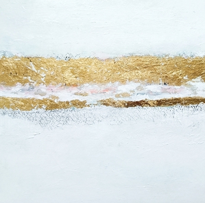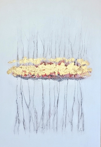 2024Blockprint inkt op doek met summier goudmetaal.