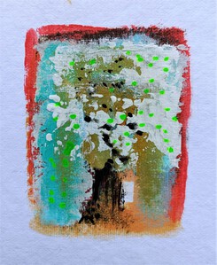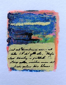 Deze werken zijn vaak ontstaan van restjes verf op restjes papier, die ik naast het grote werk tegelijk creëer.