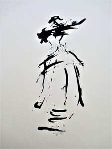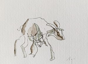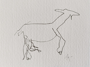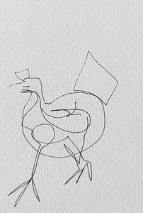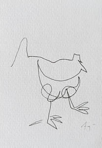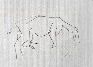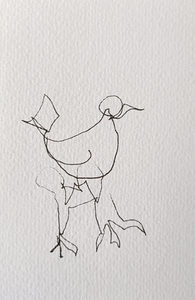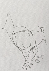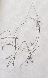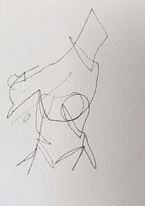 Niet kijken naar het papier, niet kijken of de compositie wel klopt. Gewoon blijven kijken naar datgene wat je wilt tekenen, de pen over het papier laten gaan, de lijnen volgen en de rust ervaren. Er komt een mooi lijnenspel tot stand.